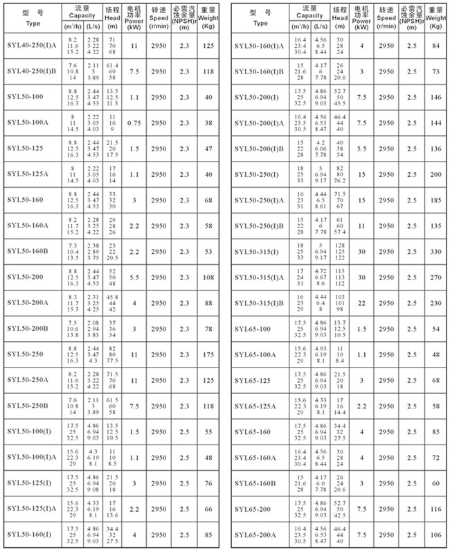 關鍵字:SYL型單級單吸立式離心泵參數五